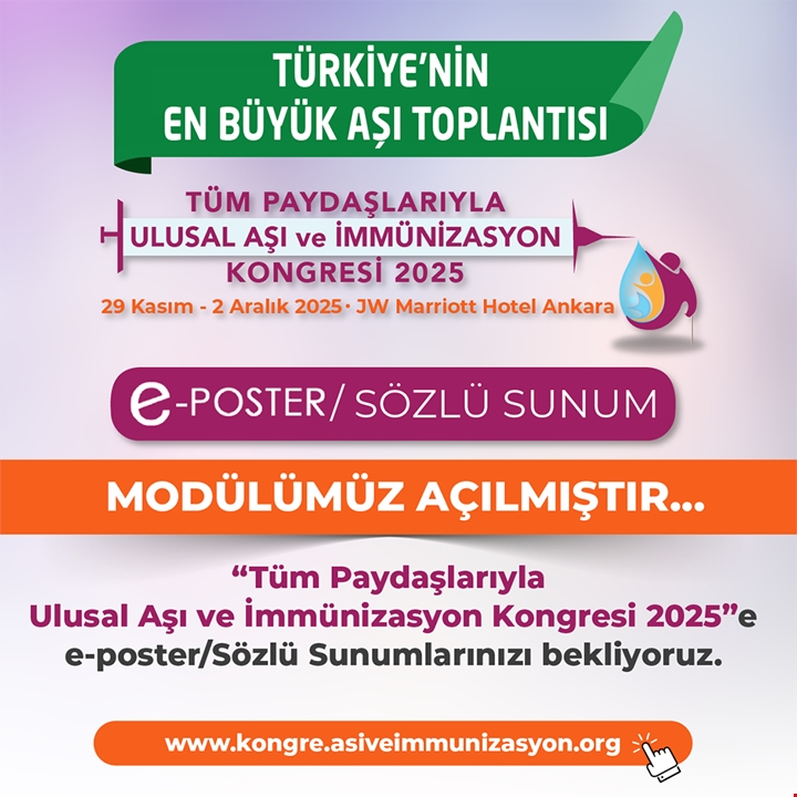 “Tüm Paydaşlarıyla Ulusal Aşı ve İmmünizasyon Kongresi 2025” E-Poster/Sözlü Sunum Modülümüz Açılmıştır...
