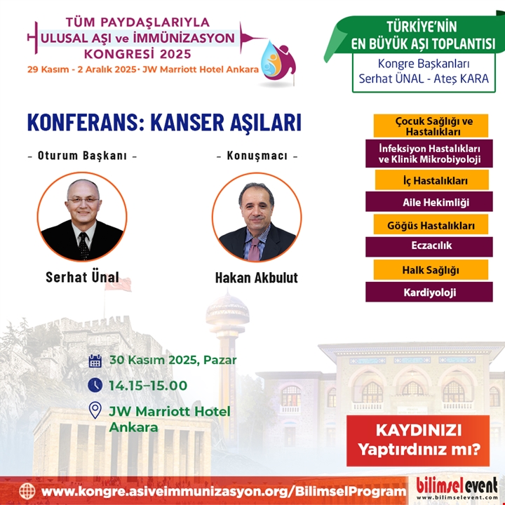 KAYDINIZI YAPTIRDINIZ MI? TÜM PAYDAŞLARIYLA ULUSAL AŞI VE İMMÜNİZASYON KONGRESİ 2025 29 KASIM - 2 ARALIK 2025 – JW Marriott Hotel Ankara