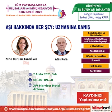 KAYDINIZI YAPTIRDINIZ MI? TÜM PAYDAŞLARIYLA ULUSAL AŞI VE İMMÜNİZASYON KONGRESİ 2025 29 KASIM - 2 ARALIK 2025 – JW Marriott Hotel Ankara